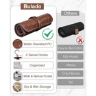 Compact and Luggage-Friendly: Bulado travel toiletry bag offers ample space in slim design. Unfolding to a generous 20x17.5 inches, our men's toiletry travel bag provides plenty of room for all your essentials, allowing you to view everything at a glance. Toiletries travel bag can be hung using its hooks or laid flat on sink. Whit an elegant rope closure, toiletry travel bag rolls up for effortless packing, making it the ultimate travel companion. It's perfectly sized to fit into your luggage. Waterproof and Stylishly long-lasting: Travel with confidence knowing your toiletries are secure. This men's toiletry bags for traveling, crafted from premium PU crafted material, is both soft to the touch and tough. Its water-resistant quality makes it easy to clean. The men's cosmetic travel bag's stylish brown adds a touch of class, while the waterproof layer ensures everything stays dry. Perfectly designed for the modern traveler, this men's shaving bag is more than a utility—it's a statement of style. All in Eye, Grab and Go Ease: Our men's shaving bag is a travel game-changer with 11 pockets. This personalized toiletry bag includes a leak-proof PVC section for wet items and a 4.7-inch pocket for bigger item. With 6 elastic band and 4 zippered pockets, it neatly stores everything from shaving to skincare items. Its clear layout provides easy visibility, making your routine efficient. Perfect for the smart traveler, this roll ensures your toiletries are always tidy.