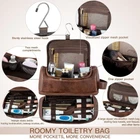 WATER RESISTANCE STURDY MATERIAL:Exceptionally well built, the toiletry bag is made of PU leather, water-resistant nylon lining to keep moisture out of the bag. Premium zipper and reinforced seams are also implemented for long-lasting performance WATERPROOF SHOES BAG: Comes with a waterproof bundle pocket for storing your shoes, dirty clothes, etc. Made from 100% waterproof fabric to ensure everything stays dry! UPGRADE LARGE CAPACITY - 2 separate compartments and multiple pockets inside, Dimension: 12" x 4.7" x 7.1"/ 30.5cm*12cm*18cm (L*W*H), which can contain most of your toiletry travel essentials orderly in the bag like toothbrushes, deodorants, travel-size shampoos, toothpaste, makeup, and shaving cream, etc. LARGE OPENING CONVENIENT STORAGE & CARRY: Side leather handle, easy to carry. Large zipper opening at the top, easy access to toiletries. Stow-away swivel non-slip metal hook for versatile hanging options. MULTIPLE USE & SUITABLE FOR TRAVEL: This versatile hanging toiletry bag can also be used as a men's or women's shower bag, bath organizer, Dopp kit, or shaving bag. This makes it an excellent travel essential for business trips, vacations, gym, camping, home use, and more.