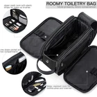 WET SEPARATION: The two outside compartments can keep the wet/dry separated like wet towel or swimsuit. Dry quick and easy to clean.No worry that favorite clothes ruined by spilled shower gel or liquid WATER RESISTANCE STURDY MATERIAL: Exceptionally well built, the toiletry bag is made of PU leather, water-resistant nylon lining to keep moisture out of the bag. Premium zipper and reinforced seams are also implemented for long-lasting performance WATERPROOF SHOES BAG: Comes with a waterproof drawstring pocket for storing shoes, dirty clothes, etc. Made from waterproof fabric to ensure everything stays dry UPGRADE LARGE CAPACITY: Multiple pockets inside, which can contain most of your toiletry necessaries orderly in the bag. Large Size: 12" x 6.7" x 7.1"/ 30.5cm*17cm*18cm (L*W*H) DOUBLE ZIPPER LARGE OPENING: This long-lasting toiletry bag features a unique double zipper design, which allows for easy access to its inner contents. Simply pull on the connected zip puller for full exposure