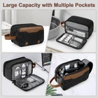 Extra Electronic Organizer: toiletry bag for men is designed with electronic cable organizer compartment. The multiple mesh pockets and elastic loops are great for taking your cords, cables, USB drive, cellphone, charger, mouse, flash drive, and other accessories, which also protect your electronics accessories. Saying goodbye for messy cords, making your life happier. Large Capacity: 9.5 x 4.8 x 6 inches. You can quickly put all the toiletries, hair wax, shower gel, shampoo, toothbrushes, razors, shaving cream, facial cleanser, general medicine and charging cords in the toiletry bag. The PU leather handle design can be hung on the towel rack, bathroom, and any other place where you need to display toiletries. Suitable for men to use when traveling business and on trips. High Quality Material: The surface of the men's travel toiletry bag is made of soft and sturdy PU, which is waterproof and dirt-proof. The stitching is woven with high-density double-needle thread to make the toiletry bag more sturdy and solid, increasing its durability. The bag interior is made of polyester, which is waterproof and easy to clean, even in the bathroom. There is no need to worry about getting wet or getting water in. Neat and Organized: The travel toiletry bag is designed with double zippers, allowing for an easy access to inner contents. The main compartment with a firmly magnetic buckle, increasing the closure of the toiletries bag. The 3 compartments with elastic straps can be hold bottles of various shapes and keep items upright, also putting cords and other items, keeping all your items organized. Travel Essentials: This portable travel toiletry bag is perfect for business trips, travel, gym, camping, and family outings. The design of toiletry bag is joined with embellished metal elements, which makes it classic and stylish. Great gift choice for friends, boyfriends, and family for various occasions like birthdays, Father's Day, Christmas Day, and Valentine's Day.