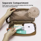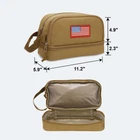 [Separate compartment:]Dimension: 11.2" X 6.2" X 5.9".Our toiletry bag for men/women has dry and wet compartments. The upper space can keeps dry items. the front pocket and main compartment of the travel bag. The main compartment contains 2 mesh pockets. The lower space is water-resistant design,which for storing wet towels and toothbrush. [Practical Design] This large tactical toiletry bag features a convenient side carrying handle; With the American patch on the front. The MOLLE design of the back lets you attach small pouches and accessories. [Sturdy Material] Dopp kit for traveling is made of 900D water-resistant fabric for long-wearing durability; Rectangular shape and durable construction allow it to sit upright.No unpleasant smell and easy to clean. [Multipurpose for usage] Tactical Molle Dopp kit will meet your needs, it can be a great storage pack or cosmetic organizer whether you are on a short trip or travel gym, camping, home use, it's big enough to fit bathroom supplies and easier to grab things during the trip. [Well-designed] shaving bag is classic and stylish. toiletries bag is suitable for travel, camping, gym, tools storage, medicine storage, size, and quality feel, even using for a long time it remains attractive.