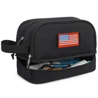 [Separate compartment:]Dimension: 11.2" X 6.2" X 5.9".Our toiletry bag for men/women has dry and wet compartments. The upper space can keeps dry items. the front pocket and main compartment of the travel bag. The main compartment contains 2 mesh pockets. The lower space is water-resistant design,which for storing wet towels and toothbrush. [Practical Design] This large tactical toiletry bag features a convenient side carrying handle; With the American patch on the front. The MOLLE design of the back lets you attach small pouches and accessories. [Sturdy Material] Dopp kit for traveling is made of 900D water-resistant fabric for long-wearing durability; Rectangular shape and durable construction allow it to sit upright.No unpleasant smell and easy to clean. [Multipurpose for usage] Tactical Molle Dopp kit will meet your needs, it can be a great storage pack or cosmetic organizer whether you are on a short trip or travel gym, camping, home use, it's big enough to fit bathroom supplies and easier to grab things during the trip. [Well-designed] shaving bag is classic and stylish. toiletries bag is suitable for travel, camping, gym, tools storage, medicine storage, size, and quality feel, even using for a long time it remains attractive.