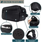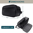 MENS TOILETRY BAG: This functional PU leather toiletry travel bag has a large compartment and side pockets with additional pockets to hold all your toiletry, shaving, and grooming accessories. Equipped with elastic bands and additional mesh pockets to keep your hygiene items secured while traveling or at home, this cosmetic make up case will help you stay organized. LARGE OPENING TOILETRIES TRAVEL BAG: This toiletry bag organizer has double zipper design that allows for easy access to the large main compartment. With one simple pull on the handle, you can easily access key accessories such as shaving kit, tooth brush, and shampoo. This toiletry travel bag has the convenient design that helps you stay organized and makes this travel bag case an essentials during any traveling, flights, hotel stay, and weekend vacation. WATER RESISTANT TOILETRY BAG DOPP KIT: This toiletry case kit is made from high density PU leather with added side padding for durability and extra protection to keep your toiletries safe and protected during travel. The lining is water-resistant to prevent liquid splashes from entering the bag or luggage. The toiletry bag also offers excellent wet/dry separation so you can keep wet accessories in a separate compartment from dry toiletries during camping, road trips, weekenders. TRAVEL ESSENTIALS FOR MEN: The handle has a clip-on buckle to easily attach any bathroom bars and hangers so you can easily access this travel organizer in hotel rooms, bathroom, and showers. Its compact design means the toiletry bag is easy to pack and fits well in luggage and backpacks. This makes a great gift for father, men, boyfriend, uncle, husband, groomsmen and is especially appropriate for fathers day, Christmas, Birthday and those who love to travel. LARGE CAPACITY TOILETRY TRAVELING BAG: Measures 10.5 x 5.5 x 6 inches (L x W x H), the toiletry bag is large and roomy with ample room to store all essentials, accessories and toiletries during travel or home use. Easily fits all shaving kits, toothpastes, showering bathroom tools in this bag. Simply wipe clean with a damp cloth.