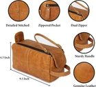 REAL LEATHER TOILETRY BAG FOR MEN : Made from Full Grain Leather Hide. The leather for this Toiletry Bag is selected very wisely, It's very sturdy and easy to fold. The sturdy real leather provides a long life and the soft texture makes it easy to carry in the luggage. BEST GIFT FOR MEN : Surprise your loved ones this Christmas with this beautiful handcrafted Leather Dopp Kit Travel Organizer. This travel pouch is a best friend for a male. It acts as Shaving Kit, Dopp Kit, Travel Pouch, Toiletry Bag and many more.. STYLISH AND LUXURIOUS LEATHER BAG : Genuine Leather Toiletry Bag With Vintage & Retro Style Design. Black Cotton Interior with One Exterior Zippered Pocket For Easy Access Of Your Essential Stuff At Your Fingertips. SPACIOUS AND VERSATILE : Double Zipper Closure Compartment, One External Zippered Pocket, Leather Strap Handle, Premium Black Cotton Lining, Makes It Smooth And Easy To Groom Yourself While Traveling. DIMENSIONS AND WEIGHT: This Leather Travel Organizer is 9 Inch Long and 5 Inch Wide with 4 Inch Height. It weights about 150 Grams which makes it light and easy to carry around.
