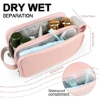 【 ROOMY CAPACITY 】- 10.63 x 4.73 x 6.89 inch. This toiletry travel bag is large enough for your 7-14 days travelling or daily use. The multi-functional toiletry organizer bag can hold all your make up tools, full-sized cosmetics, toiletries, or travel essentials. 【 HIGH QUALITY 】- Cosmetic bag is Made of water-resistant Synthetic leather, soft and durable. Each compartment of the makeup bag is filled with 3mm foam to provide great protection for the items in the bag.The design of the double zipper head provides convenience for accessing cosmetics. 【Keep Wet & Dry Separated】- The back compartment is a PVC pocket that is easy to clean and can keep the wet and dry items separated. It can hold towels, toothbrushes, toothpaste, mouthwash, etc. 【HUGE MAKEUP BRUSHES AREA】 - There are 10 slots on the front compartment to fit different sizes of brushes. One zipper bag, which can hold the long Eyeshadow Palette, and two mesh bags, which can hold the toner and Lotion. 【WARRANTY AND SUPPORT】- We ensure every customer gets a great buying experience with the store. If you find any product issues, please let us know as soon as possible and we will get back to you within 24 hours. WARRANTY: The toiletry bag shall replace the bag or accessories if it proves to be defective in terms. Warranty period: Six months from the date of purchase.