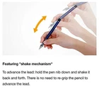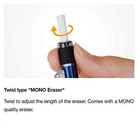 This modern and stylish Mechanical Pencil is chock-full of cool features. There's no need to let go and re-grip your Pencil every time you want to extend the lead. Just shake the Pencil Up and down! ("Fore Knock" Mechanism ) you can also push the clip downward-this conventional click mechanism is very smooth and easy. To lock the shaker mechanism, push the clip upward. ("Fure lock" Mechanism) When locked, you don't have to worry about accidentally extending the lead; even when you shake the Pencil, the lead will not come out. The long guide pipe lets you see where you're drawing or writing. The popular Tombow mono eraser is installed at the top with a twist mechanism and usable length of approximately 0.7 inches (1.8 cm). in addition, if you run out or eraser, you can replace it with an eraser refill, er-mg. This attractive Pencil features the Tombow mono stripe design, and has a transparent gray grip area and clear clip. Mechanical Pencil + holder eraser "Tombow mono" Core diameter is 0.5mm. Core appear when you shake vertically pen "fure Knock" Deployment. Eraser out by turning the black RING at the top. Eraser refill is manufacturer-mg