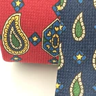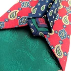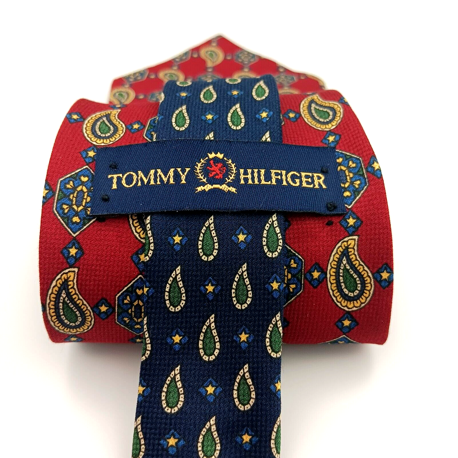 Brand = Tommy Hilfiger Color = Multicolor - Red to Blue with motifs in green, yellow, white. Fabric = 100% imported Italian Silk Pattern = Foulard - Geometric Made in United States (USA) Material = Woven Silk Length inches = 60 Width inches = 4 Notes = Unique color patterns - changes from Red to Blue along with variety of geometric shapes. Medallions paisley floral stars - a variety of patterns. Please see photographs for condition, approximate measurements, patterns and design. Kind regards, Karen Anns Attic