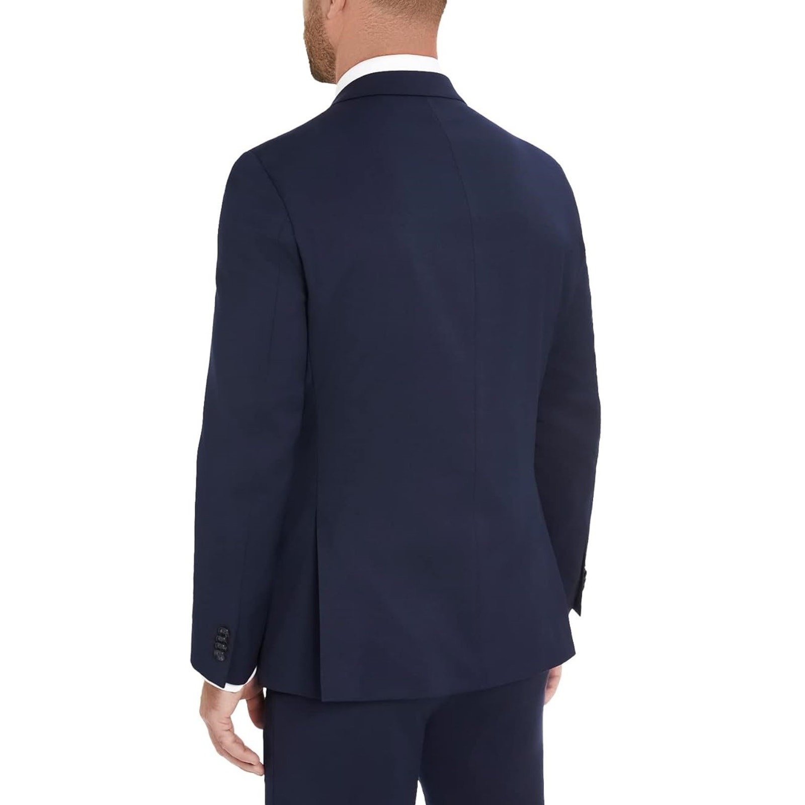 Tommy Hilfiger Men's Navy Wool TH-Flex Stretch Modern-Fit Suit Jacket Size 38R New with tags MSRP $450 Comfort athletic modern fit Two-button closure Four-button cuffs Side vents Fully lined Stretch performance Two front flap pockets Left chest welt pocket Interior welt pockets Notched lapel 52% wool / 45% polyester / 3% Lycra spandex Lining: 100% polyester Dry clean