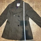 Add a touch of classic style to your wardrobe with this Tommy Hilfiger olive green peacoat. Made of high-quality wool and lined with polyester, this coat is perfect for keeping you warm and comfortable during the fall season. The coat features a solid pattern, button closure, and pockets for added convenience. This women's peacoat is a size 5 and has a regular fit. It is perfect for casual occasions and can be paired with any outfit. The coat is designed with a classic theme and accents include buttons. It is a must-have for any fashion-forward woman. Made in China, this coat is a great addition to your collection.