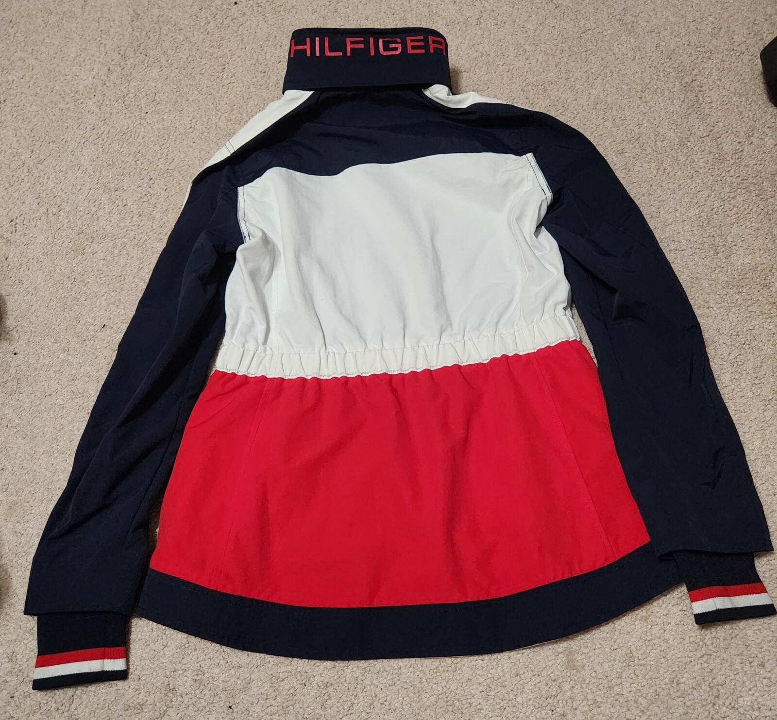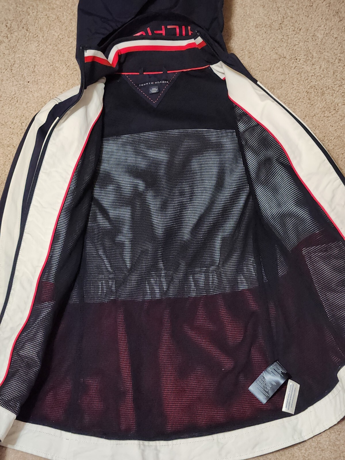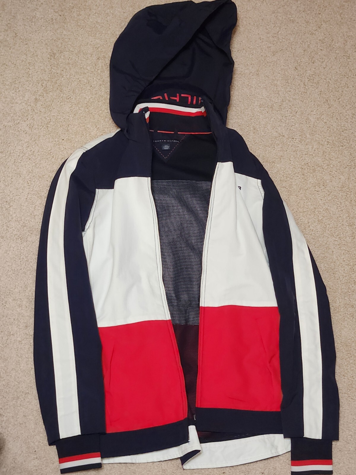 Love this windbreaker! It’s lightweight, stylish, and super easy to pack—great for travel or everyday use. The minor stain inside is barely noticeable, and the fit is perfect. The hood adds extra convenience, and the classic Tommy Hilfiger look never goes out of style. Highly recommend for anyone wanting a reliable, chic jacket!