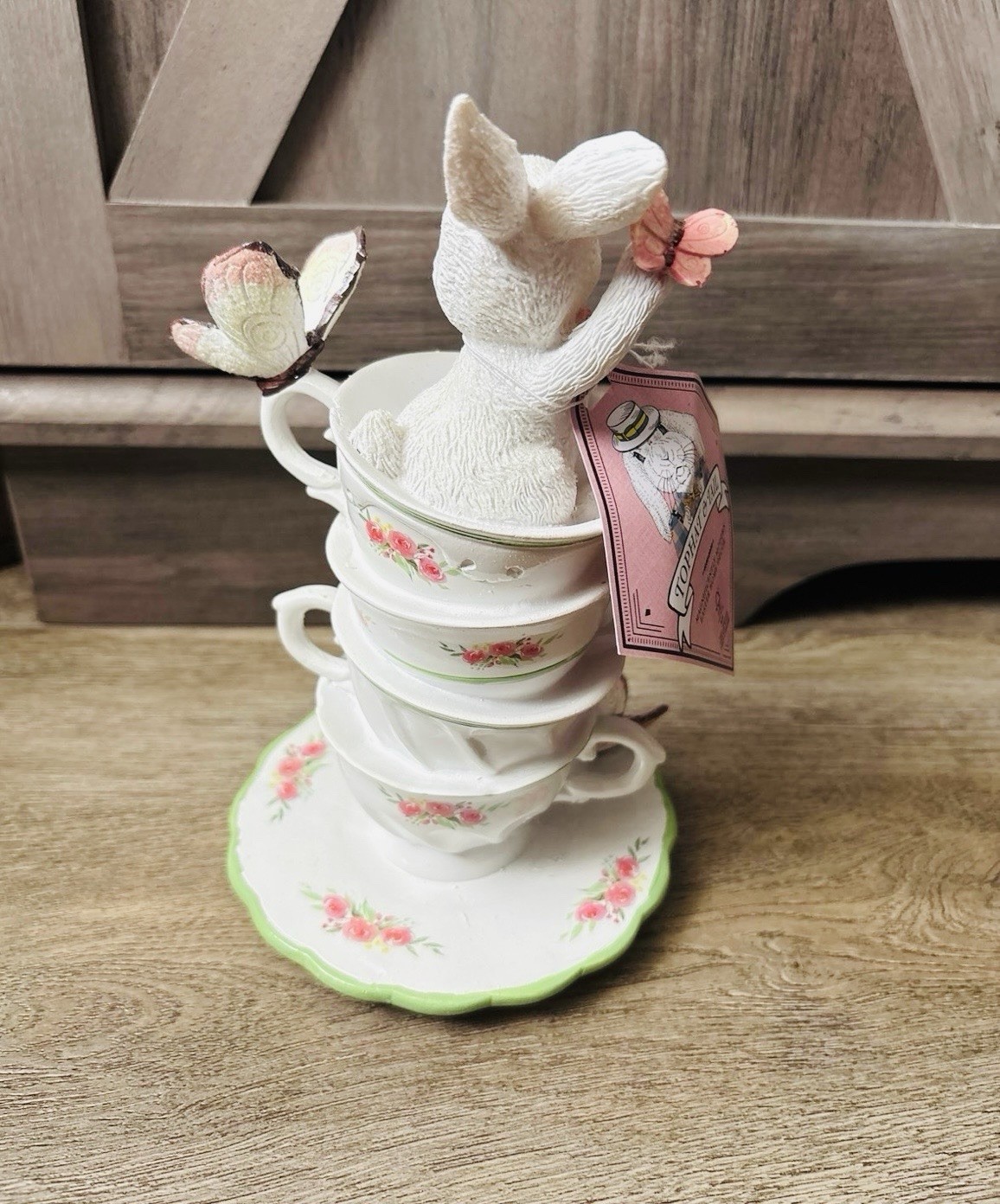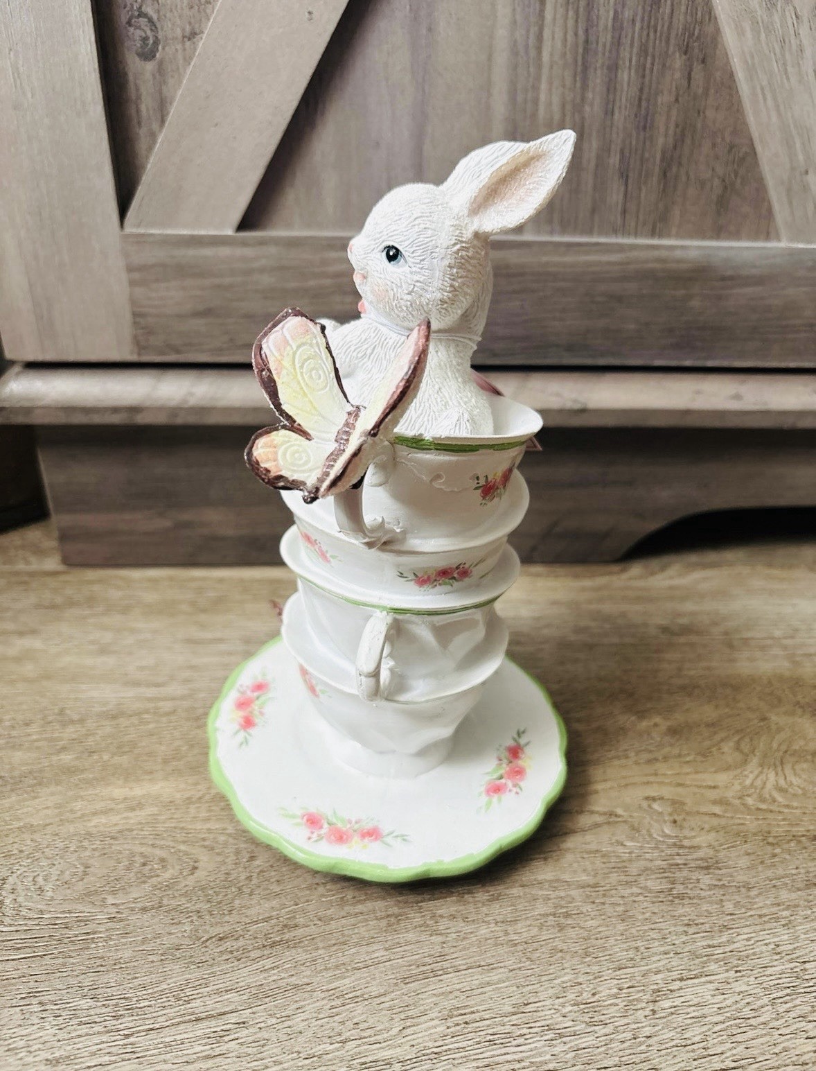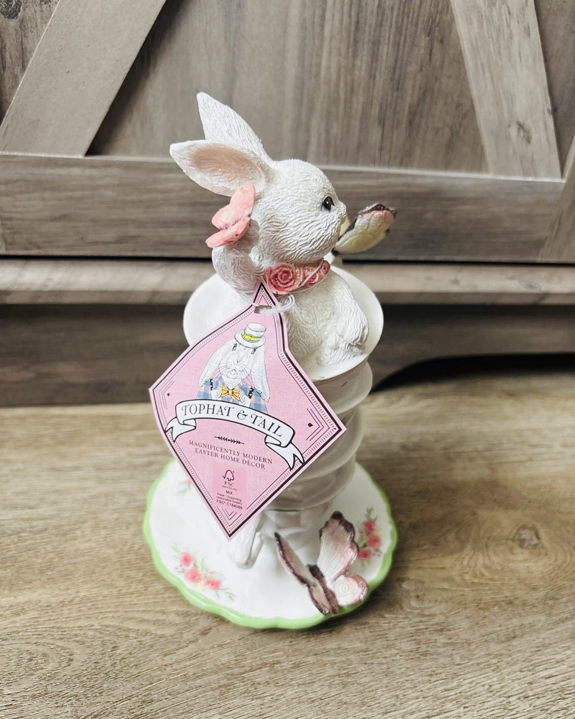 Easter Bunnies Pair Wooden Handmade 16cm Easter Decoration Bunny Figurine Set Standing