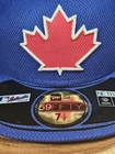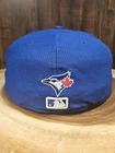 Add this Toronto Blue Jays New Era 59Fifty Fitted Hat to your collection! This stylish baseball cap is perfect for any occasion, whether you're attending a baseball game or just out and about. The hat features a solid blue color with the team's logo prominently displayed on the front, making it a great way to show your support for the Blue Jays. The hat is made with high-quality materials and is designed to provide maximum comfort and UV protection. It is a size 7 1/2 and can be adjusted to fit your head perfectly. This cap is perfect for men who love sports and want to look stylish while traveling, going to parties, or even wearing to work. Get your hands on this MLB Baseball cap now!