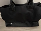 Tory Burch Black Logo Patent Trim Tote Bag Gold Hardware Zip Closure