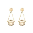Tory Burch Lady Crystal Earrings Classic Double T Logo Elegant Fashion