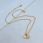 HomeTory Burch Long Chain Necklace Lady Classic Pearl Double T Logo