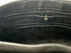 The Tory Burch Shoulder Bag Purse in black leather features a magnetic flap closure and a rectangular shape, making it perfect for travel, parties, or casual outings. The bag is medium in size with a pebbled finish and gold tone hardware, adding a touch of elegance. Black leather shoulder strap and inner pockets provide both style and functionality, while the fabric lining in black complements the overall design. This designer purse from Tory Burch's Britten collection is a sophisticated choice for any fashion-forward woman. No crossbody strap but can easily be replaced.