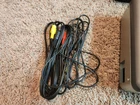 Everything you see pictured. Turns on, but I have no way of testing it any farther. Does show some cosmetic wear. Missing a foot pad, cord end is messed up, and something black on instructions. All of these flaws have been pictured. Please review all pictures carefully for exact cosmetic conditions. Shipped carefully and fast. As is. No returns.