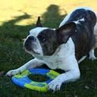 NERF-TOUGH: Nerf-quality materials make our Toss and Tug Ring Toy perfect for fetch and for teaching your dog new tricks TWO TOYS IN ONE: The tossable flyer shape paired with the durable tug body creates hours of interactive fun MADE TO LAST: Lightweight, durable, and weather & water resistant FOR MEDIUM AND LARGE BREEDS: With a 9 inch diameter, this flyer is ideal for medium and large breeds SAFETY FIRST: Designed with you dog's safety in mind, each of our dog toys are tested to ensure endless hours of family fun Get ready for high-flying action and non-stop fetch with this flyer! This disc floats in the water so you can bring it to the beach, lake, or pool for added fun. If you’re training your dog for dock diving, this adds a fun twist to training!