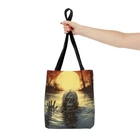 Small Medium Large Height, in 13.00 16.00 18.00 Length, in 12.00 15.00 17.00 Width, in 3.46 3.46 3.46 Handle height, in 14.00 14.00 14.00 Handle width, in 1.00 1.00 1.00 This practical, high-quality tote bag is available in three sizes. All-over print provides comfort with style. Made from reliable materials, lasting for seasons..: 100% Polyester.: Boxed corners.: Black inner stitching, transparent thread on hems..: Black cotton handles.: With non-woven laminate inside