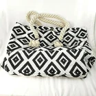 Tote Bag Shopping Beach Purse Black White Geometric Tribal Rope Handles Snaps Footprint approximately 20" long x 15" tall x 5.25" wide Bottom 5.25" x 15.25" Manmade Material Zipper Pocket Inside Drop from Center of Rope Handle to Top of Bag is 7" Made in China Manufacturer Color is called Black Aztec Will ship international Adjustments to charges will be made for multiple listings shipped together.