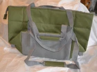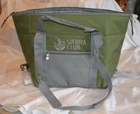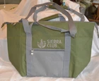 A Light Green & Light Gray Tote Bag from Sierra Club Measures about 13" x 12" x 12" when open. Has a 7" Front Zipper with another 7" Zipper on the inside, same area as front zipper. Has a Handle and a Shoulder Strap. Lining feels like Plastic and is Light Gray. One photograph shows the tote inside the bag it came in, which was not opened until the photos were taken. I am selling this as I do not need it and am downsizing. From a smoke-free home; not musty.