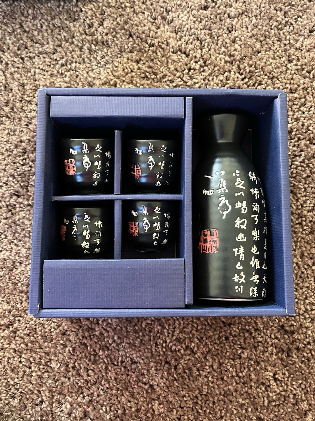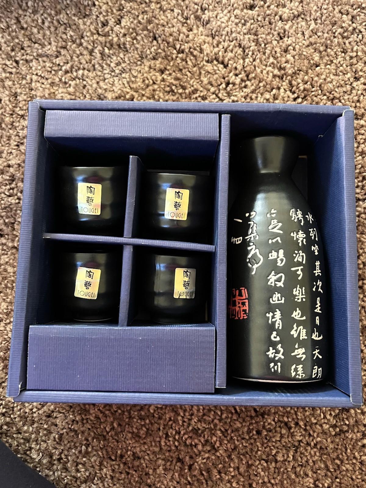 The Tougei Japanese Sake Set includes five pieces of black porcelain and ceramic drinkware, perfect for serving and enjoying traditional Japanese sake. The set is not only functional but also decorative, adding a touch of elegance to any table setting. Imported from Japan, this set is a stylish addition to any home bar or dining collection.