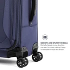 Description The Tourlite Softside 19" Carry-On Luggage with 4 Wheels Spinner is perfect for short to medium length trips, and international traveling. This durable Carry-On is packed with great features like four spinner wheels to provide an effortless 360-degree roll, a full-length interior lid pocket, side accessory pocket, and adjustable hold-down straps inside. Back by Travelpros limited lifetime coverage plus trusted companion promise, which covers the cost of repair for damage from airline or another common carrier for 1 year. Case Dimensions: 19" x 15"x 7.75" / Weight: 5.3lbs SOFTSIDED LIGHTWEIGHT CARRY-ON LUGGAGE- BLUE: The Tourlite Carry-On 19-Inch in blue is designed for convenient and easy travel. This softside luggage provides flexibility when packing and is lightweight, making it easy to lift and stow. The sleek exterior in blue coupled with the durability of the Tourlite range, makes it the perfect carry-on for any traveler. 360 SPINNER WHEELS + PATENTED CONTOUR GRIP HANDLE: The 4 spinner wheels rotate 360 degrees for easy and smooth rolling. The adjustable PowerScope handle, with Travelpros patented Contour Grip, can be set to two heights: 38 in and 42.5 in. The Contour Grip handle has rubberized touch points at the top, bottom, and side for a more comfortable carrying. With three easy-grip handles, this luggage is designed for effortless lifting and maneuvering. EFFICIENT ORGANIZATION: This Carry-On features two exterior pockets that allows quick access to essentials. The roomy interior includes a full-length mesh pocket, mesh side pocket, and adjustable compression straps to keep your items tightly packed. Plus, ergonomic high-tensile zippers are strong yet easy on the hands. ULTRA DURABLE + WATER REPELLENT PROTECTION: Made from durable DuraGuard material, the exterior offers reliable protection against water and stains. The material is easy to clean, keeping your luggage looking great. For added privacy and security, a discreet side compartment holds your identification tag helping prevent lost luggage. QUALITY YOU CAN TRUST: Back by Travelpros limited lifetime coverage plus trusted companion promise, which covers the cost of repair for damage from airline or another common carrier for 1 year. Case Dimensions: 19" x 15"x 7.75" / Weight: 5.3lbs