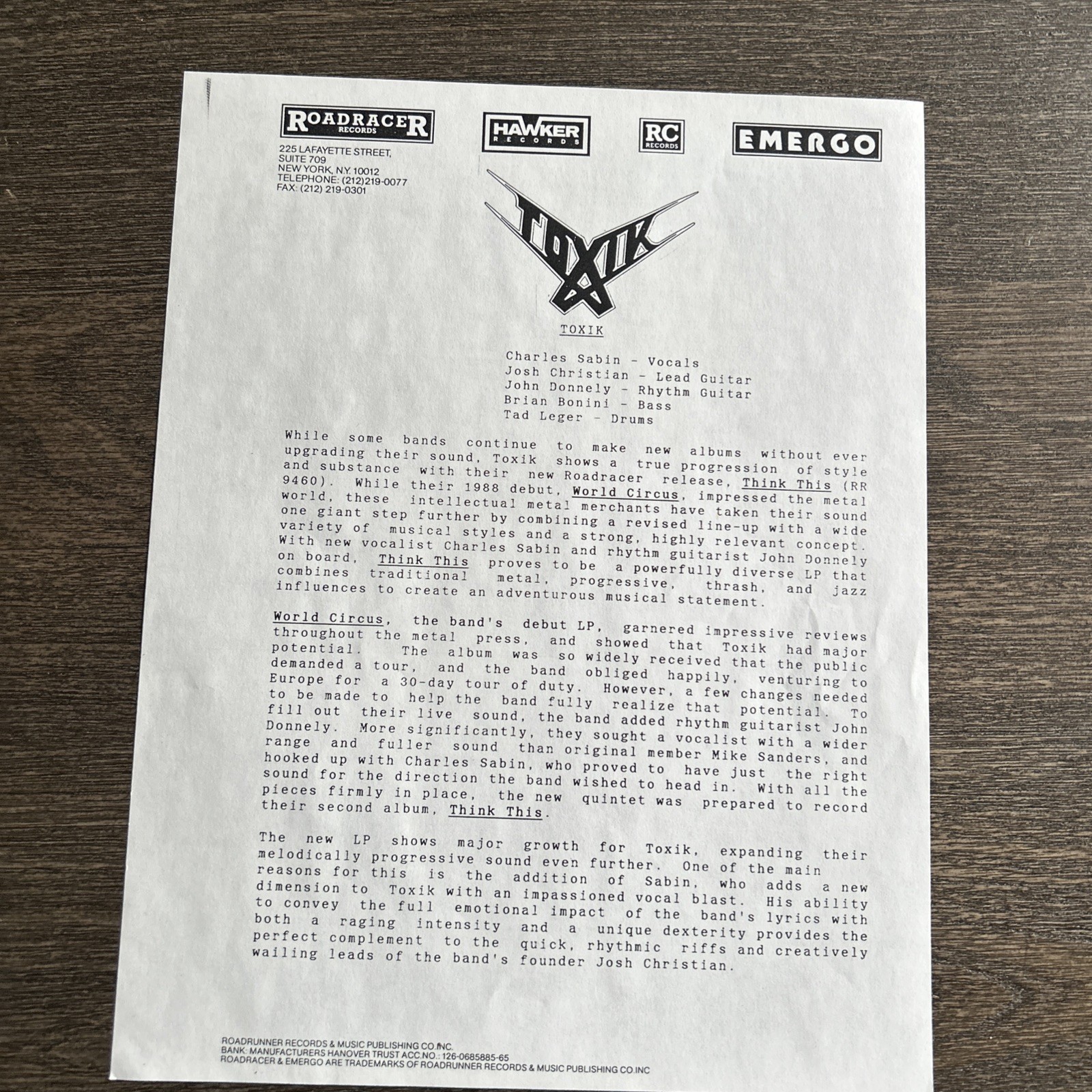 Media in VG+ condition. Outer sleeve generic white. Promotional letters and lyric page attached.