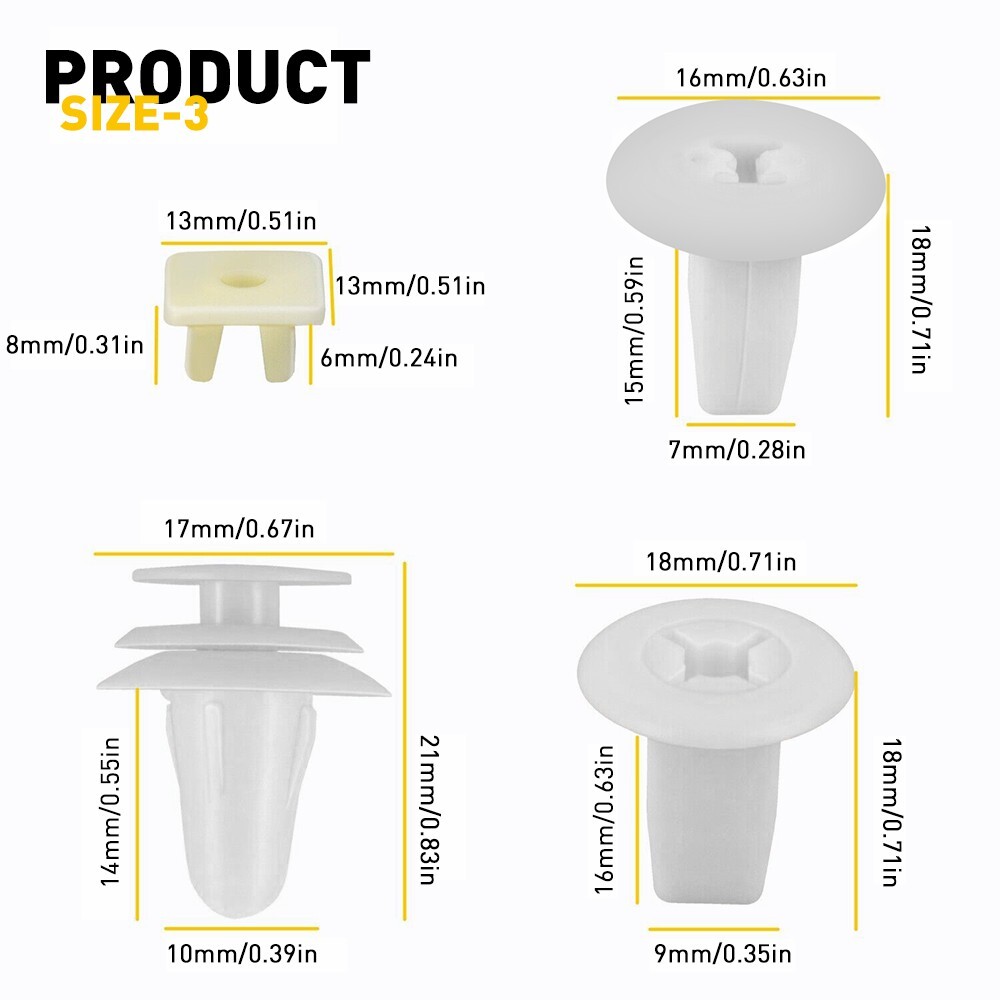 Specifications: Material:Plastic nylon Placement on vehicle: These clips are fitting for door trim, radiator shield yoke, fender, engine splash guard rivet, bumper and splash shield retainers for Toyota. Features: *Function They can be used for Hood, Bumper, Fender Liner Retainer, Rear Bumper Cover Clip Push-Type Retainer, Screw Type Retainer, Door Trim Panel Retainer, Trim Panel & Hood Seal Clip, Nylon Screw Grommet replacement. *Superior material Adopt to excellent materials to prevent it from corrosion and cracking. *Easy installation Simple installation with direct replacement, other modification is not required. For Toyota Clips Trim Fender Push Pin Rivet Bumper Door Panel Retainer Fastener Specifications: Material:Plastic nylon Placement on vehicle: These clips are fitting for door trim, radiator shield yoke, fender, engine splash guard rivet, bumper and splash shield retainers for Toyota. Features: *Function They can be used for Hood, Bumper, Fender Liner Retainer, Rear Bumper Cover Clip Push-Type Retainer, Screw Type Retainer, Door Trim Panel Retainer, Trim Panel & Hood Seal Clip, Nylon Screw Grommet replacement. *Superior material Adopt to excellent materials to prevent it from corrosion and cracking. *Easy installation Simple installation with direct replacement, other modification is not required. *Please Note: Communication is the best way to solve the problem. If you have any problems after purchasing, please contact us via eBay Message before return. Packaging include: 146 X Clips Item Specifics Brand AUXITO Type Body Bolts Universal Fitment Yes Fitment Type Direct Replacement Color Black Items Included 146 X Clips Manufacturer Warranty 1 Year Features Durable Placement on Vehicle Front, Rear Material Plastic nylon Fit For Toyota Finish Matte Performance Part Yes Store dyy_motor NOTICE Please double-check the part number and models Payment 1. We can only accept payment from PayPal. 2. Please keep the consistency of Paypal address and ebay address. Shipping 1. All items will be shipped in 12 hours after receiving your payment . 2. We ship this item to US only via USPS first class mail. It usually takes 3-5 working days to deliver. Returns 1. We offer 30 days return policy. 2. Please contact us within 30 days from the date you receive your package if you have any questions with the products . 3. Refund will be sent after we got your returned package. 4. All returned items should be in the original packaging with tracking number. Contact Us We work from Monday - Saturday 9:00AM - 6:00PM, but we will reply once we get your message. There will be delay on response if you send message or E-Mail on Sunday. DESCRIPTION PAYMENT SHIPPING RETURN POLICY CONTACT US Shop Category Store Home Other Hot Item Universal Car Windshield Wiper Squirter Washer Nozzle Spray Jet Kit Fluid Hose T USD 9.99 Set of Delco 4 AC Oxygen O2 Sensor for 2003-2005 Chevrolet GMC V8 5.3L USD 50.99 1set Control Knob Speed Fan Heater A/C For Jeep Wrangler TJ 99-06 5011218AA USD 9.49 For 2002-2008 Dodge Chrysler Stereo Car Radio Wiring Harness Adapter USD 11.96 Door Latch Cables LH+RH Front For 2007-2013 Chevy Silverado 1500 2500 HD 3500 HD USD 17.99 New List Item For 2010-2014 LED Mustang Ford Rear Bumper Marker Side Light Red Lamp Smoke Lens USD 17.99 For Chevy GMC 5.3L 4.8L 6.0L LS1 LS2 LS3 M295 Oil Pump Timing Chain Gasket New USD 75.99 Black Pillar Post Covers Molding Window Protector Trims For 2012-2016 Honda CR-V USD 14.99 White 18-LED Side Under View Mirror Puddle Light for Ford F150 2007-19 Brightest USD 14.99 MAIN & ROD BEARING W/ THRUST WASHER FOR 11-16 KIA OPTIMA 2.0L 2.4L SPORTAGE 2.0L USD 24.99 Excellent Delivery For Toyota Clips Trim Fender Push Pin Rivet Bumper Door Panel Retainer Fastener Specifications: Material:Plastic nylon Placement on vehicle: These clips are fitting for door trim, radiator shield yoke, fender, engine splash guard rivet, bumper and splash shield retainers for Toyota. Features: *Function They can be used for Hood, Bumper, Fender Liner Retainer, Rear Bumper Cover Clip Push-Type Retainer, Screw Type Retainer, Door Trim Panel Retainer, Trim Panel & Hood Seal Clip, Nylon Screw Grommet replacement. *Superior material Adopt to excellent materials to prevent it from corrosion and cracking. *Easy installation Simple installation with direct replacement, other modification is not required. *Please Note: Communication is the best way to solve the problem. If you have any problems after purchasing, please contact us via eBay Message before return. Packaging include: 146 X Clips Payment Shipping Returns Contact Us 1. We can only accept payment from PayPal. 2. Please keep the consistency of Paypal address and ebay address. 1. All items will be shipped in 12 hours after receiving your payment . 2. We ship this item to US only via USPS first class mail. It usually takes 3-5 working days to deliver. 1. We offer 30 days return policy. 2. Please contact us within 30 days from the date you receive your package if you have any questions with the products . 3. Refund will be sent after we got your returned package. 4. All returned items should be in the original packaging with tracking number. We work from Monday - Saturday 9:00AM - 6:00PM, but we will reply once we get your message. There will be delay on response if you send message or E-Mail on Sunday. All rights reserved. On Mar 25, 2025 at 20:56:55 PDT, seller added the following information: