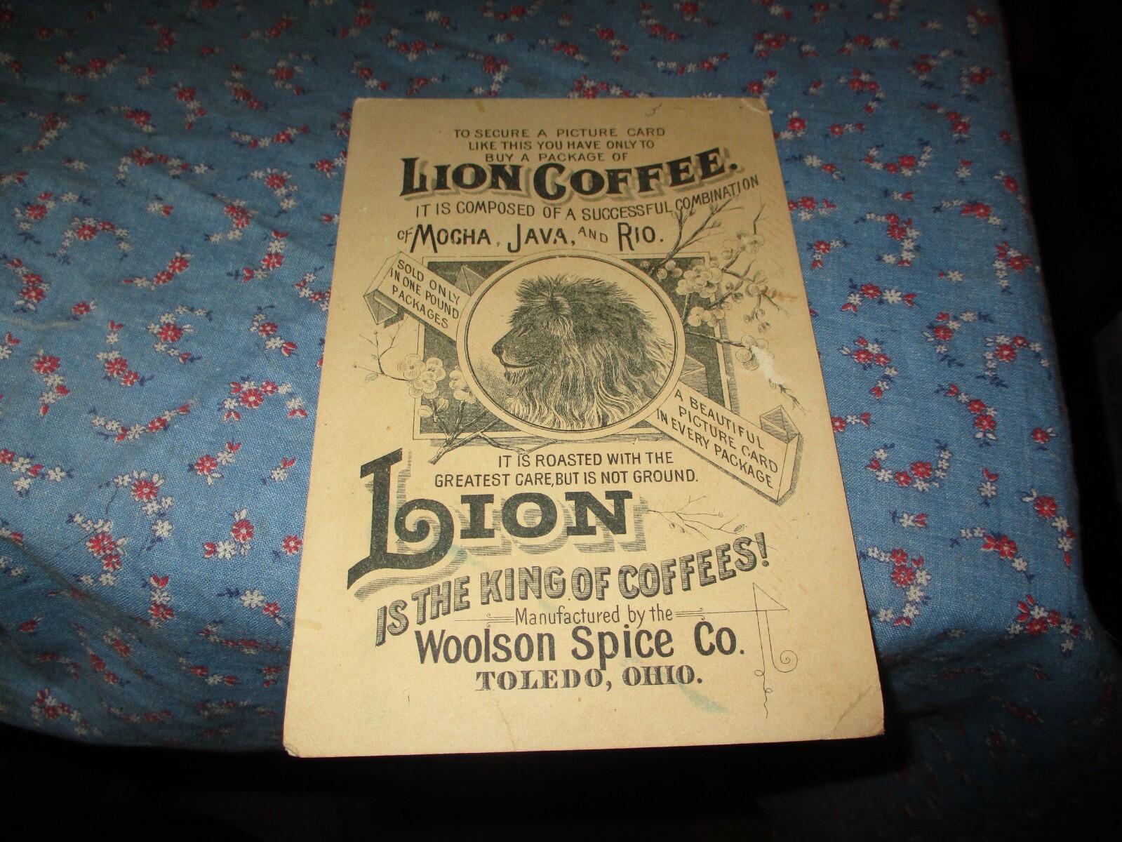 Size:4 1/2 x 6 3/4 InchesSeller Notes:“Please look over the photos provided for more information about this item.”Color:Multi-colorBrand:Woolson spice Lion CoffeeType of Advertising:Trade Card