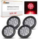 MADCATZ Guarantee Fully 2 Years: Our products come with a warranty. If a customer has some questions or any issues with using our product, or the lights are defective, please directly contact us for advice and remedy. Pack of 4: You will receive 4 pcs of 4 Inch round clear lens red trailer tail lights are provided in an order. It comes with good design materials, silicone rubber housing and PC lens, which have no shade color. High Brightness: It comes with 12 LED super flux F3 Piranha LED provides a super brightness to make your night safety, the light can stand by with 50,000 hrs lifespan but power saving, low temperature and low power consumption. The dimensions are 4” x 4” x 1” (L x W x H) without Rubber Grommet and 5.5” x 5.5” x 1.8” (L x W x H) with Rubber Grommet. Simple Use: It has 3 wires with polarity; white wire is negative electrode, black wire is positive (low brightness), red wire is positive (high brightness) and screw sets on the package. Good Standard: The light comes with good performance, waterproof, shock and vibration proof. It adds great functionality and is widely used on most 12V DC vehicles like Heavy Duty Truck, RV, Cabin Cars, Trailer, Bus, Tow, Tractor, Etc.., as the exterior light. Product Description Installations: Easy going, measure the diameter to drill the hole, connecting wiring and mount the light with rubber. It comes with 3 completely wiring, Black is Positive (Low Brightness) / Red is Positive (High Brightness) / White is Negative. LED: Built in with F3 Piranha LED chipsets 10 diodes, provide an extra bright light, make your driving safe on the road, durable with high quality material. Waterproof: Waterproof, shockproof, weatherproof, dustproof and vibration proof (not recommended to soak in the water for a long time) Universal fits on any 12V DC vehicles, such as Truck, RV, Trailer, Cabin Cars, Caravan, Trailer, Pickup, Lorry or any other vehicles as well as the hole dimension fits. Specification: Number of LED: F3 Piranha 10 LED Light Color: Red Lens Color: Clear Light Size: 5.5”x 5.5”x 1.8” (L x W x H) Hole Distance: 4" x 4" Cable Length: 6.5” Operating voltage: 12V DC Package Included: 4 Pcs 4” Round Clear Lens Red Tail Lights 10 LED