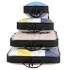 Transparent Packing: We select quailty clear PVC which is easily to see through what inside these packing organizers; So you can pick up your belongings quickly when you need Water-Repellent PVC: Waterproof Feature Nicely Protect Your Clothes from Spill or Leaks; Easily Store Your Clothes and Protect Your Clothes from Stains, Aslo they are easy to clean How to Compress: The cube is compressed by the middle zipper; Using steps: 1)Fold and flatten clothes 2)Pack clothes in the cube and zip the front zipper 3) Put a finger on the back of the middle zipper when compressing to avoid zipper get stuck in fabric CONVENIENT&MULTI-FUNCTIONAL: Classifying and organizing your belongings for your travel will become easy with these packing organizers; You can choose different size set for different use purposes Different sizes of packaging cubes are available for different packaging applications