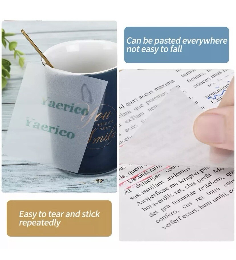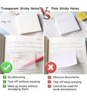 Description Product Overview: These transparent sticky notes come in packs of 50 sheets each (for a total of 100 sheets), measuring 3" x 3". They are designed for easy writing and sticking in various environments. High Quality Assurance: Crafted from waterproof material with a smooth surface for comfortable writing; perfect for school, home, or office use. Repositionable and Trace-Free: Easily removable without leaving residue, allowing for flexible use without damaging surfaces. Use them on books, screens, surfaces seamlessly! Practical Use: Perfect for highlighting important information without obscuring underlying text; suitable for a wide range of applications including memos and reminders. Shipping Offer: Enjoy free shipping on your purchase! Features Versatile Writing Options: Compatible with oil-based markers, pencils, and ballpoint pens; not suitable for gel ink pens. Durable Material: Made from high-quality paper and PET, ensuring secure adhesion and clean removal without wrinkling or fading. Convenient Size: Each sticky note measures 3 x 3 inches, making them ideal for quick notes, to-do lists, and ideas on the go. Writing Friendly and Long Lasting: The notes are writing friendly, with lots of uses from many writing utensils and uses, recommended using ballpoint pens / pencils for best results. Wide Applicability: Can be used on various surfaces like books, refrigerators, computers, and blackboards; also makes a great gift.