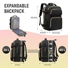 Travel Backpack For Women and Men,Person Item Flight Approved Carry On Bag Fits 17.3 Inch Laptop,Expandable Waterproof Casual Stylish Daypack,black 【Expandable & Extra Large Travel Backpack 】: Dimensions: 18 x12.6 x 8 inches and weight of 2.2 lbs,Extra Large Travel Backpack,main compartment fit your laptops from 17 inch, Backpack can expand from 26L to 40L for daily work or business travel.seperate pockets designed for items like file folders,can easily hold 3 -5 days of travel essentials. 【TSA FRIENDLY & Comfortable Design 】:Specially designed for air travel, the backpack can be deployed 180 degrees to facilitate and quickly pass the airport security check. Back U-shaped three-dimensional ventilation design help for the air convection,provide more comfortable experience. Mesh pockets on sides are designed for oversize water bottle and compact travel umbrella. 【 Metal Zippers & Polyester Fabric】:Women Stylish Backpack, Made of high-quality Metal Zippers and polyester fabric,A breathable adjustable shoulder strap, an adjustable chest buckle, and a thick sponge back pad help relieve the pressure on the shoulder and back,anti-friction shoulder strap,durable and comfortable, Ergonomic design ,The equipped dry and wet separation pockets can hold toiletries and wet clothes,is perfect for rainy day travel, weekend travel. 【RFID Pockets & USB Charging】:RFID-Blocking pockets ,help protect personal data on passports,credit cards,debit cards.Anti-theft pocket designed on the back of the backpack makes it easy to put your phone and wallet in and keep them safe. External USB Charging port and built-in charging cable,convenient for mobile charge anytime and anywhere.(The backpack doesn't power itself and the package does not include a power bank) 【Stylish & practical gift】: Stylish backpack for Women,large storage space makes it as a work backpack, travel backpack, is suitable for a business trip or a vacation for women and also a good gift for,friends,husband,wife,parents,son and daughter.
