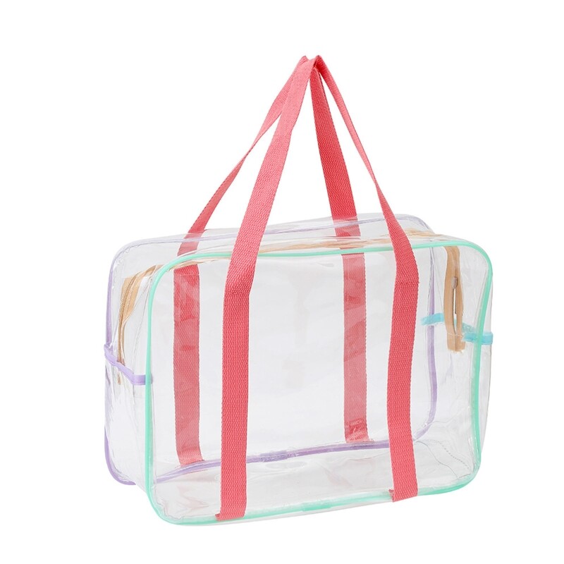 Features: With enough space to store your toilet articles. Also, it is versatile and can accommodate any items other than toiletries. Good transparent pvc material, softer and more pliable, durable and reusable. Top sturdy zipper closure with pulls keeps all your belongings dry. Transparent design allows you to easily see the content and location of stored items, quickly find what you are looking for without wasting for time. These portable toiletry bags are lightweight, suitable for traveling, business trip, student trip and more. The clear plastic travel bag can be used as travel bag, cosmetics bag, stadium bag, gym bag, swim bag, storage bag, waterproof bag, gift bag, jewelry bag, general packaging, daily necessities packaging bag, even stationery bag or schoolbag. Pvc material is waterproof and not easy to get dirty, very light, durable and reusable. Specifications: Material: PVC Large Size: Approx. 35.5x14x26cm/ 13.97x5.51x10.23in Small Size: Approx. 21x6.5x13cm/ 8.26x2.55x5.11in Type: Large, Small Package Includes: 1pc Transparent Cosmetics Handbag note: 1. Please allow 1-2cm errors due to manual measurement, make sure that you do not mind before you order. 2. Due to the difference between different monitors, the picture may not reflect the actual color of the item.