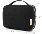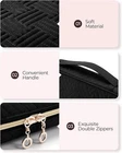 BAGSMART Jewelry Organizer Bag Travel Jewelry Storage Cases for Necklace, Earrings, Rings, Bracelet, Black [Spacious Capacity]: Jewelry travel organizer features 4 necklace clips, 4 ring holders, and a PU leather earring plate, providing ample space for 12 pairs of earrings, along with 3 transparent pockets for various jewelry items. [Practical Design]: The compartments in the travel jewelry organizer are crafted for user convenience, effectively preventing necklace entanglement, ensuring easy ring access, providing durable protection for earrings, and featuring transparent pockets for effortless jewelry identification. [Travel-Friendly Size]: Measuring 9.8''L x 6.1''W x 1.9''H and weighing 0.55 pounds, this compact and lightweight jewelry case is ideal for travel, while also suitable for home jewelry organizer storage, ensuring convenience and practicality wherever you go. [Premium Quality]: Crafted from soft polyester, water-repellent fabric, this jewelry holder organizer travel features durable metal double zippers andstrong carry handle, ensuring long-lasting use and protection for your jewelry. [Ideal Gift Option]: This exquisite jewelry pouch bag is perfect for storing necklaces, earrings, rings, bracelets, watches, hairpins. It's a thoughtful and delightful gift for friends, family, and women, suitable for birthdays, Valentine's Day, and Christmas.
