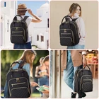 Quilted Laptop Backpack Specifications: Dimension: 17.3”H x 12.6”L x 6.7”W. Weight: 1.5 lb. Shoulder Strap Length: Up to 45". Material: Nylon + Sponge + Gold-Plated Zipper Backpack for women built from Exquisite gold-plated zippers, PU leather top handle, fashion stitch texture polyester waterproof fabric and gold-plated zipper on the outside, and tear-resistant material on the inside for durability. USB Charging Port Design: With an External USB charging port set-in charging cable, this USB laptop backpack offers you a more convenient way to charge your phone while on the go. (Power bank NOT included). Multi-function Laptop Backpack: Backpack for women have retractable pockets on both sides, which are specially designed for small items. You can put small items such as water cups, umbrellas, etc., simple and convenient. This is a stylish computer daypack, ideal gift for granddaughter, daughters, friends, lover, teachers, womens. A great choice for pretty backpack, office work backpack, travel backpack for women, bookbags for women, daily use basic backpack, nurse backpack, teachers backpack, all indoor and outdoor activities. Stylish Black Quilted Backpack: Black & gold backpack for women is made of fashion quilted polyester waterproof fabric with gold plated zipper on the outside and tear resistant material on the inside for durability. The backpack handles are the right length and are designed for handbags. If your into backpack purses this would be perfect for you. Large Backpack with Laptop Compartment: laptop backpack for women. Size: 17.3*12.6*6.7 inch, 30L. The laptop backpack has a total of 5 compartments and 2 side pockets - 1 padded 15.6" laptop compartment and 1 large compartment for travel items such as folders, books, clothes, etc. 2 front compartments and 1 front pocket provide ample capacity for organizing - wallet, notebook, pens, sunglasses, keys and more. USB Charging Port Design: There is a USB charging port extension on the side of the work backpack, with a built-in charging cable inside, which is convenient to charge your phone (POWER BANK is not included). work bag is a very beautiful and very functional bag. Convenient Womens Backpack: The mesh shoulder strap design on both sides of the back pack allows enough air circulation around your shoulders, and sturdy top handles and luggage straps make it easy to carry. A fashion pretty black gold backpack designed for all-day comfort. The hidden anti-theft pocket on the back can protect your smartphone, wallet, passport and other valuables from being lost, for all basic daily needs for university, work, travel, hiking, business trips. Ideal Gift: This stylish backpack is perfect for all occasions: college, travel, business, daily use, indoor and outdoor activities. This is a great backpack for college , nurses, doctors, teachers, work womens and other business people. The best choice for gift giving. Age: over 3 years old