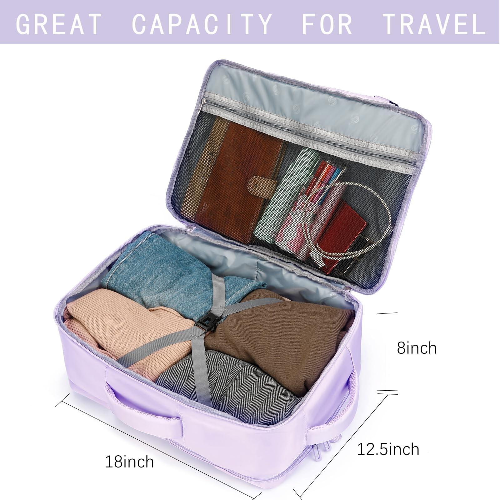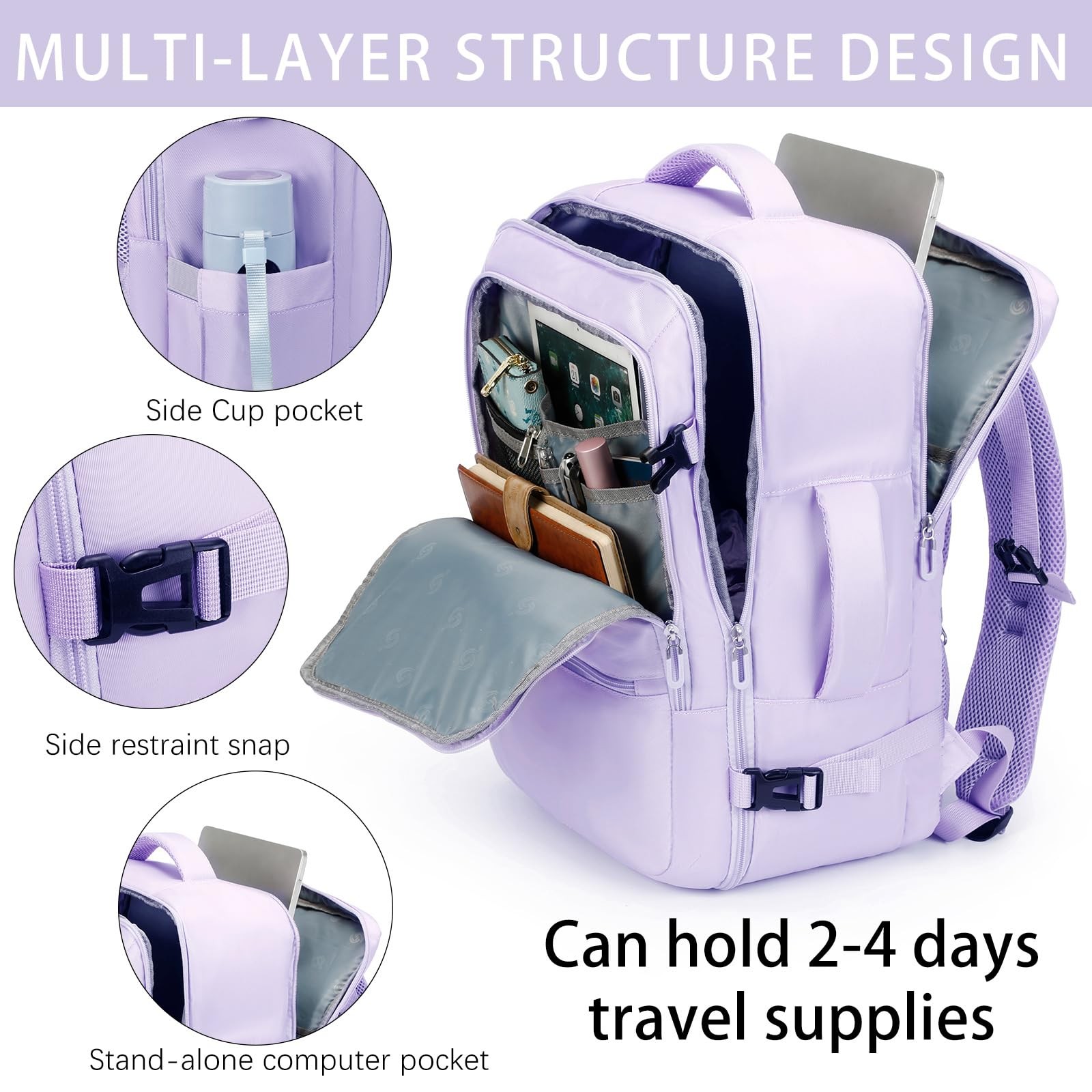 Travel Carry On Backpack AFTER SALES SERVICE : We solemnly promise that within one year of receiving this product, if any quality defects occur during normal use, you only need to take a photo of the defective product and contact us. We will reply with a solution to the problem within 24 hours, or send you a new identical product for free to replace the defective product STURFY AND LIGHTWEIGHT, SUITABLE FOR TRAVEL: The travel backpack is made of lightweight and sturdy polyester material, with a zipper that is easy to close and open. This portable backpack meets the personal carry on standards of airlines and can be installed under the overhead luggage rack or seat. You can easily install travel equipment for 2-4 days, equivalent to the capacity of an 18 inch suitcase, making it a good choice for weekend vacations and business trips CONVENIENT DESIGN: This portable travel backpack is designed with thick padded shoulder straps and a hidden anti-theft pocket on the back for storing valuable items such as wallets. There is a pocket on the left side for placing water bottles, and two handles on the top and right sides, designed to lift the backpack from multiple angles, providing you with a more flexible carrying experience EASY TO ORGANIZE: The main compartment of the luggage backpack can be opened 180 degrees for easy access to items. It has independent mesh pockets and spacious space to store different travel equipment. The internal compression elastic band can effectively secure items. The front compartment is equipped with various pockets for storing stationery, books, pens, and other small items, while the rear compartment has a separate computer compartment for easy access REDUCE PRESSURE FEATURE: The luggage backpack is equipped with an adjustable shoulder strap length device, 4 external side compression buckles, and a breathable back panel, which can effectively relieve pressure on the shoulders and neck, as well as reduce the pressure on the zipper. Thickened sponge handle and shoulder straps make carrying and gripping the bag more comfortable(This item is not intended for use by people 12 years old and under)