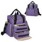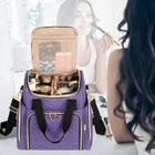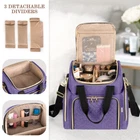 PROTECTIVE: Made of heavy-duty nylon. Soft padded interior keeps your makeup in good condition when transporting. 2 REMOVABLE CASES: The bottom contains 2 individual removable cases (size: 8.5" x 6" x 3") for organizing makeup and skin care kits (The clear top helps to see what is stored inside). There is also a mesh zipper pocket to keep some flat supplies. UPPER SECTION: The upper section is equipped with 3 detachable dividers which makes it easy to keep cosmetics organized. The top mesh pocket is good for storing face masks and small items. SIDE TOOLS POUCHES: 2 side pouches for holding brushes, lipsticks and the like. The transparent part is wipeable. PORTABLE: Attached with sturdy handles and a detachable shoulder strap. A vertical strap on back to slip over suitcase handle. Whole bag size: 10.25" x 7" x 12".