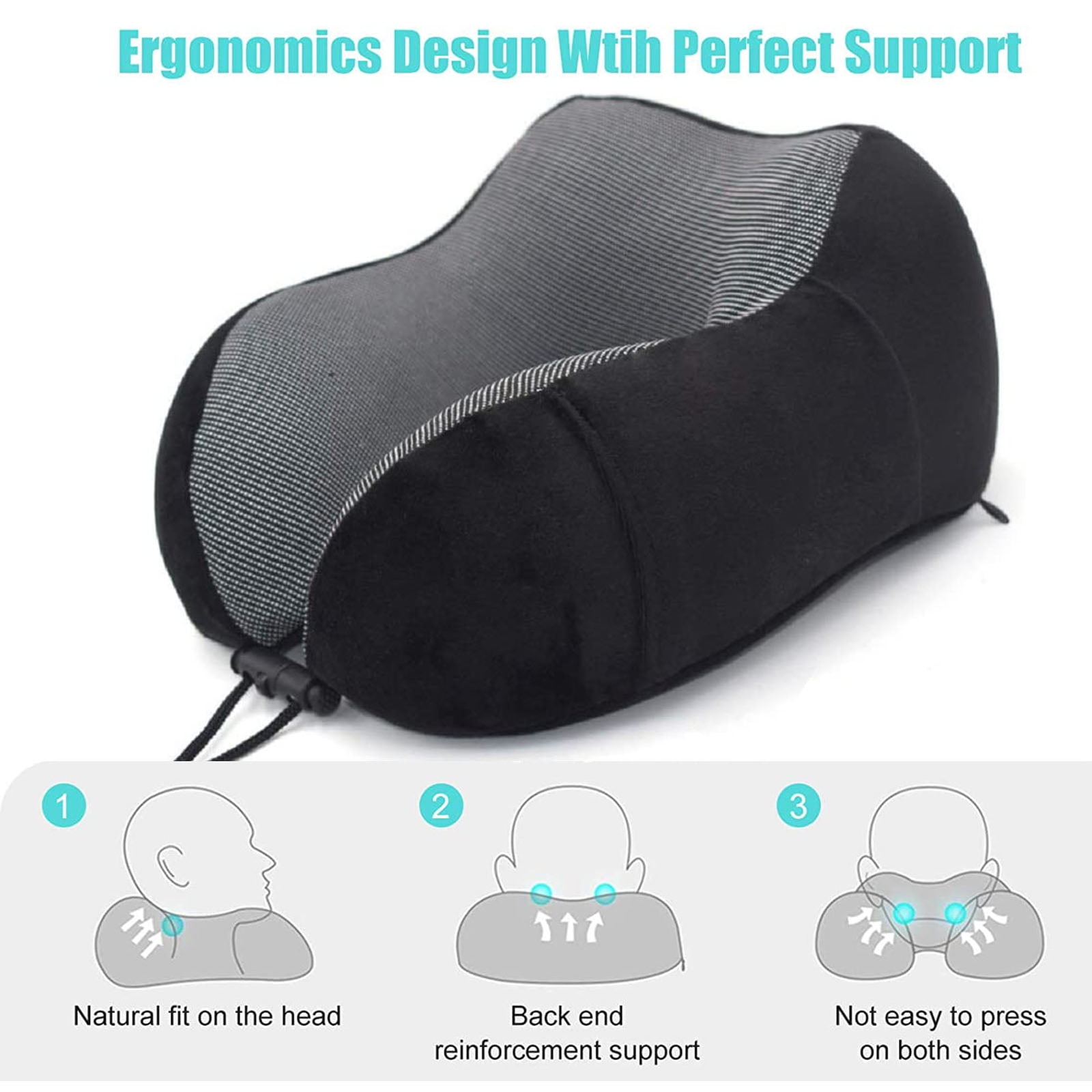 About this product ?Soft support material? The pillowcase is made of ultra-soft silver fox texture plush, soft and comfortable, no pilling, no fading, skin-friendly, suitable for adults and children. The pillowcase is equipped with an easy-to-use zipper for easy cleaning. ?High-quality memory foam? Our pillow is made of high-quality memory foam, luxurious and breathable. The memory foam perfectly supports the head and neck. Easy to compress and conveniently store in the pillow storage bag. ?Ergonomic design? Multi-angle protection of the cervical vertebra - the hump shape at the back fixes the cervical vertebra to prevent the head from sliding sideways; the groove design on both sides, natural fit, reduce bone pressure; the front is raised, prevent the head from bowing too much, and protect the health of the cervical vertebra. Perfect airplane and car travel companion? The adjustable rope design can easily adapt to various body shapes and easily adjust the comfort level, suitable for cars, airplanes, travel and home. On May 3, 2025 at 20:46:51 PDT, seller added the following information: