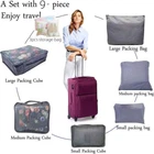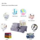 Color:as picture This 9PCS luggage cube packaging set is a comprehensive solution for organizing your travel luggage. It includes various bags to meet all your storage needs. The set comes with a laundry bag to keep your dirty clothes separate. There is also a compressed storage shoe bag for your footwear. For clothing and underwear, dedicated bags are provided to keep them neatly organized and protected during your travels. High-quality materials ensure durability and-lasting use. The bags are designed to withstand the rigors of travel. Helps you save space and stay organized while on the go. Makes packing and unpacking a breeze.