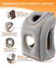 【Multi-angle Perfect Support】This inflatable travel pillow is the beginning of a good long journey or napping in the office. Your waist, head, neck, shoulders will no longer feel uncomfortable, just choose the posture you like to relax and have a good sleep and napping. You also can watch movies or play games on your phone within the neck pillow. 【Enjoy Sleep and Portable】The airplane pillow come with the 1*eye mask and 2*earplugs, help you sleep faster and enjoy your sleep on the trip.This inflatable travel neck pillow also comes with the 1* drawstring bag for easy storage, so it won't take up too much space in your carry-on. 【Inflate And Deflate Easily】Airplane neck pillow has a 2-in-1 double valve design.The upper black air valve is a one-way air inlet for inflating or replenishing gas.bottom transparent air valve can be quickly inflated and deflated,when you are done blowing it up, push clear cover on and push whole valve in so that it is flush with the side of the travel pillow. 【Ergonomic Design】The neck pillow for airplane travel are made of PVC flocking with a soft surface material that fits your face perfectly. The upgraded travel neck pillow has a heart shape at the top for better support of the head and a beveled bottom design for extra comfort when used on your lap. 【Multi-functiona Travel Pillow】This travel pillow for airplanes are easy to inflate and carry, and easy to attach to luggage. Whether you're traveling by plane, train, or car, travel pillows can provide you with comfortable support. (If you have any questions about the product, please feel free to consult us, we are willing to provide after-sales service for this product).