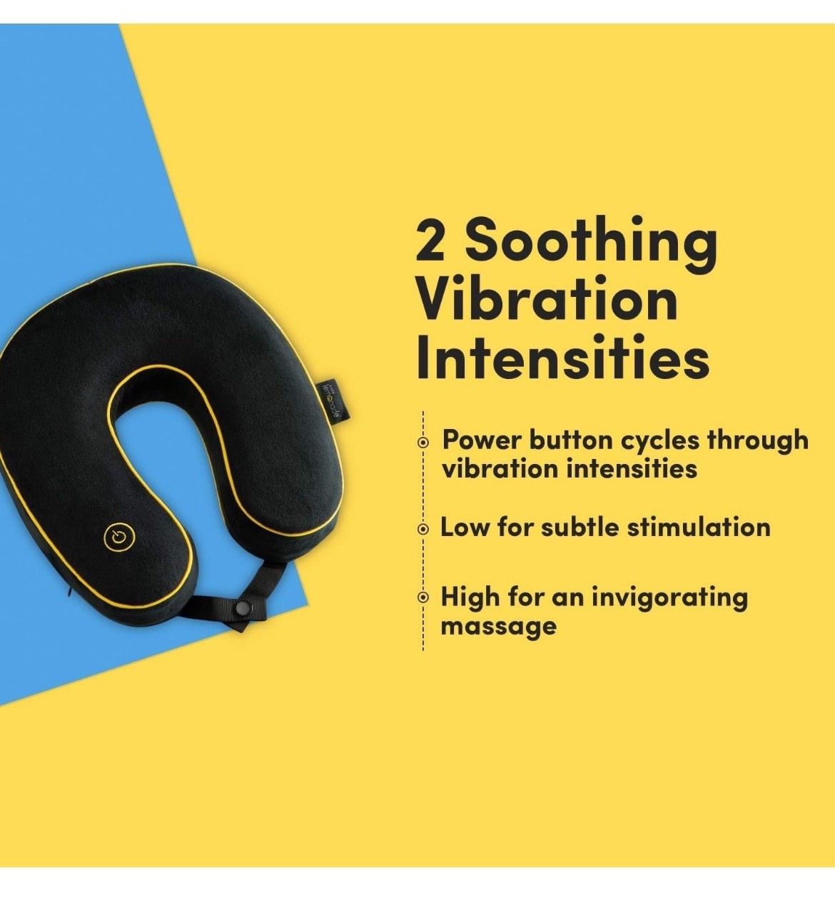 Travel Pillow with Vibration | Memory Foam Neck Pillow for Airplane, Train, or Car | Battery Operated