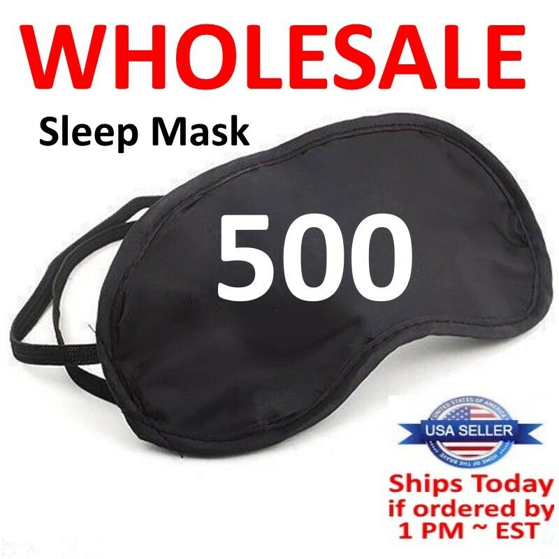 Sleeping Eye Mask Total 500 piece Lot Wholesale (with retail single packaging wrap) Great item to add in rooms for Hotel owners. Always have one handy, in your car, bedroom, recliner, 2nd home, hammock, pool, etc. Great for tanning, parties, and fun games. Uniquely shaped to allow free eye movement during your afternoon nap or a full nights sleep. Dream a little dream of pure bliss. Encourages a restful sleep. Naturally hypo allergenic and can be hand washed. Ships the same business day US SELLER FREE SHIPPING Thank You