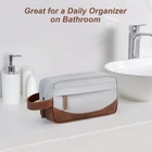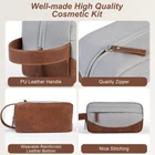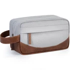 Premium material: The travel toiletry bag is made of water-resistant sturdy & wearable quality polyester and PU leather material that has no unpleasant smell. These make the bag itself very well-constructed to keep the shape, durable, easy to wipe clean and protect your toiletries from splashed water Large capacity: Size 10 x 5 x 5.5 inches. 1 main compartment which is roomy to fit facial cleanser, electric shaver, travel shampoo, and other toiletries. 3 small mesh pockets and 1 long mesh pocket with a zipper inside to store all of the travel essentials, toiletries, medicine, electronic accessories, without getting disorganized and easy to find. 1 front zipper pocket that provides extra storage with ease Portable design: Leather handle makes the Dopp kit for toiletries easier to carry and hang, reinforced bottom with leather makes it wearable. The combination of zipper & zipper ear makes it easier to hold and zip up and down. This toiletry bag is in a perfect size that can be packed up and tucked away in the suitcase Multipurpose for usage: This Dopp kit is suitable for both home and travel. It's big enough to fit bathroom supplies and easier to grab things during the trip. If you want to store other small items and makeup, it can be a great storage pack or cosmetic organizer, this bag is all the rage for storage of toiletries in the bathroom, dressing table Well-designed for gifts: The shaving bag is classic and stylish, we offer different colors for everyone to choose from. As a gift for husband and friends, it has nice color, size, and quality feel, even using for a long time it remains attractive and stands up well.