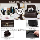 The toiletry bag features a high-quality two-way zipper made of durable zinc alloy that is easy to open and close. The zipper has a sleek design with smooth curves and rounded edges, a moderate gap and even tooth spacing, and a sturdy slider with a comfortable puller. Large capacity: This 12×5×6-inch toiletry bag features a main compartment for toiletries, shaving kits, and cosmetics. 2 visualized zipper mesh pockets and 2 small mesh compartments provide ventilation for towels, grooming accessories. An extra zipper pocket keeps private items secure. Water-resistant Material: Crafted from durable PU leather, our water-resistant toiletry bag can shields your toiletries from splashed water even in small sink areas during travel. Available in four stunning colors for personalized style. Well-crafted Details: The bag features a sturdy stainless steel hook and reinforced side handle for easy hanging. No more digging through your toiletries! Also, multiple elastic bands can hold toothbrushes, makeup brushes, and other essentials in place during travel. Wide application: The size is convenient to carry, suitable for daily life, travel, business trips, and fitness, and also a great choice for festivals, anniversaries, or wedding gifts.