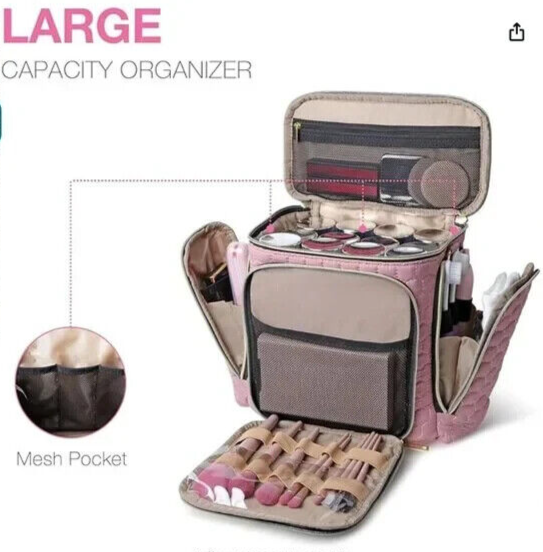Toiletry Bag For Traveling Women, Stylish Travel Makeup Bag Organizer Large Capacity Big Cosmetic Make Up Bag For Women, Wide-Open Travel Toiletry Organizer Bag, NEW IN PACKAGE PLEASE NOTE THIS BAG IS BLACK- THE PINK BAG PHOTOS ARE TO ILLUSTRATE THE BAG [ Unique and Fashionable Design Toiletry Bag】Various compartments designed to cater to your storage requirements. A top mesh zipper pocket is included for storing small items, while the main compartment offers ample space to keep all your travel essentials neatly organized. The side pockets are ideal for segregating wet and dry items, and there's even a front PVC pocket specifically designed for your cosmetics. Additionally, there's a designated area to conveniently store your makeup brushes. 【Versatile Toiletry Bag: One Bag, Multiple Functions】This versatile bag serves multiple purposes, functioning not only as a travel toiletry bag but also as a makeup organizer, shower bag, cosmetic travel bag, shaving bag, toiletries travel bag, hygiene kit bag, and more. It is the perfect companion for business trips, travel, fitness activities, camping, and everyday home use. Moreover, it is a must-have for travelers, business professionals, and outdoor sports enthusiasts. 【Large Capacity Travel Toiletry Bag】 Experience the convenience of our spacious and oversized toiletry and makeup bag.