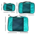 TravelWise Nylon Luggage Organization Packing Cubes, Teal, 3 Sizes PRODUCT DESCRIPTION This 3-piece travel organizer set compartmentalizes similar size items in their own “small drawers” to streamline packing and more efficiently utilize interior luggage space. Key Product Features All sizes nest inside each other to take up less storage space when not in use. Lightweight and durable nylon stands the test of time, keeping items secure without adding weight to your luggage. Includes 1 small, 1 medium and 1 large packing cubes. Bright teal in color. Compartmentalize similar items such as shirts, pants, underwear, swimsuits, and electronic accessories to streamline packing and maximize all available space in your suitcase or bag. The breathable, open mesh panel allows you to easily view what’s inside each cube without unzipping them, so you won’t have to frustratingly search for missing items. Dimensions: Small: 11.5" x 7" Medium: 13.5" x 10" Large: 17" x 11.5" Perfect for short and long trips, clothes also have less room to shift, which means less wrinkling and more time to relax on your trip. Two-way easy-pull zippers make opening and closing these luggage cubes simple and fast. Create a personalized packing system with all 3 squares to simplify work trips, weekend getaways, and long-awaited vacations!
