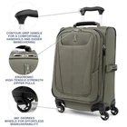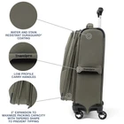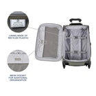 Description Maximize your options. Minimize the weight. The Maxlite® 5 Compact Carry-on Expandable Spinner gives you the freedom to carry-on – almost anywhere, with a compact spinner that is ultra-lightweight yet super durable. Designed to comply with published carry-on size restrictions of most major domestic airlines, this smaller spinner still holds plenty, and a zippered expansion option gives you up to 2” additional interior capacity when needed. Inside, the ECOFAB™ lining of this spinner is made from 100% post-consumer recycled plastic bottles to help reduce environmental waste, then treated with H2O guard for moisture resistance. A full-length interior lid pocket, side accessory pocket, and adjustable hold down straps offer endless packing possibilities and the flexibility to accommodate a variety of packing accessories. When it’s time to go, 4-wheel spinners rotate 360° for a smooth roll in any direction, a lightweight, PowerScope Lite handle adjusts to accommodate users of different heights, and the Patented Contour Grip has a rubberized finish for hand comfort and easier steering. Compact Carry-on is designed to comply with published carry-on size restrictions of most major domestic airlines. Tapered expansion design keeps the center of gravity low to help reduce tipping while providing up to 2” additional packing capacity. This suitcase has PowerScope Lite handle locks in two positions (38” and 42.5”) to accommodate users of different heights and a Patented Contour Grip designed with rubberized touch points for a comfortable handhold and easier maneuvering on the smooth 360° 4-Wheel Spinners. ECOFAB interior lining with H2O guard is made from 100% post-consumer recycled plastic bottles to help reduce environmental waste. Durable polyester fabric with DuraGuard water-repellent coating resists stains. Full length interior lid pocket, side accessory pocket, and adjustable hold down straps offer packing convenience and flexibility. 4-wheel spinners rotate 360° for superior maneuverability and a smooth roll in any direction. Overall Dimensions (includes wheels and carry handles): H: 22 in. W: 14 in. D: 9 in; Case Dimensions: H: 19.5 in. W: 13.75 in. D: 9 in; Weight: 5.1 lbs. Durable softside luggage backed by Limited Lifetime Coverage plus trusted companion promise, which covers the cost of repair for damage from airline or other common carrier for 1 year. Applicable when purchased as new and after registration.