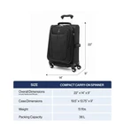 Description Maximize your options. Minimize the weight. The Maxlite® 5 Compact Carry-on Expandable Spinner gives you the freedom to carry-on – almost anywhere, with a compact spinner that is ultra-lightweight yet super durable. Designed to comply with published carry-on size restrictions of most major domestic airlines, this smaller spinner still holds plenty, and a zippered expansion option gives you up to 2” additional interior capacity when needed. Inside, the ECOFAB™ lining of this spinner is made from 100% post-consumer recycled plastic bottles to help reduce environmental waste, then treated with H2O guard for moisture resistance. A full-length interior lid pocket, side accessory pocket, and adjustable hold down straps offer endless packing possibilities and the flexibility to accommodate a variety of packing accessories. When it’s time to go, 4-wheel spinners rotate 360° for a smooth roll in any direction, a lightweight, PowerScope Lite handle adjusts to accommodate users of different heights, and the Patented Contour Grip has a rubberized finish for hand comfort and easier steering. Compact Carry-on is designed to comply with published carry-on size restrictions of most major domestic airlines. Tapered expansion design keeps the center of gravity low to help reduce tipping while providing up to 2” additional packing capacity. This suitcase has PowerScope Lite handle locks in two positions (38” and 42.5”) to accommodate users of different heights and a Patented Contour Grip designed with rubberized touch points for a comfortable handhold and easier maneuvering on the smooth 360° 4-Wheel Spinners. ECOFAB interior lining with H2O guard is made from 100% post-consumer recycled plastic bottles to help reduce environmental waste. Durable polyester fabric with DuraGuard water-repellent coating resists stains. Full length interior lid pocket, side accessory pocket, and adjustable hold down straps offer packing convenience and flexibility. 4-wheel spinners rotate 360° for superior maneuverability and a smooth roll in any direction. Overall Dimensions (includes wheels and carry handles): H: 22 in. W: 14 in. D: 9 in; Case Dimensions: H: 19.5 in. W: 13.75 in. D: 9 in; Weight: 5.1 lbs. Durable softside luggage backed by Limited Lifetime Coverage plus trusted companion promise, which covers the cost of repair for damage from airline or other common carrier for 1 year. Applicable when purchased as new and after registration.